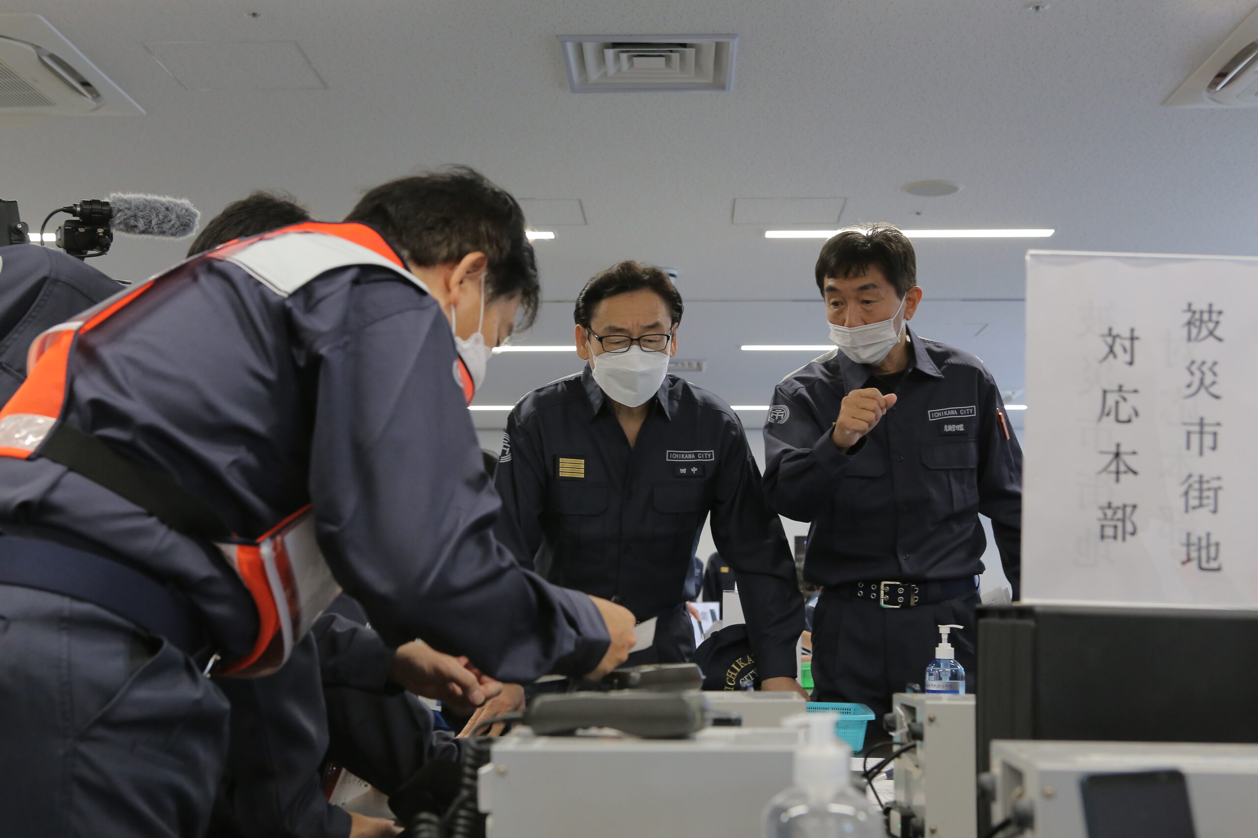 本番さながらの訓練に緊張感が走る中、本部の役割を確認しました。
